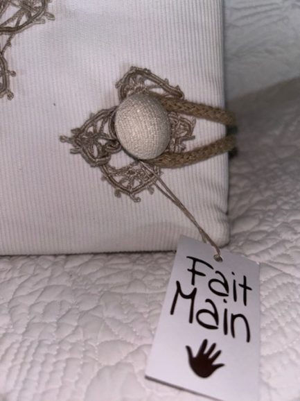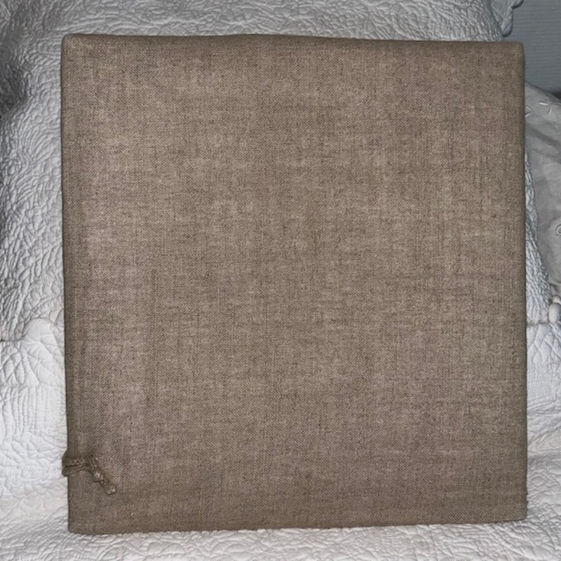 Ce grand album vous permettra de ranger 200 photos en 10/15 Je l’ai confectionné en lin, matelassé, orné de très jolies dentelles anciennes.