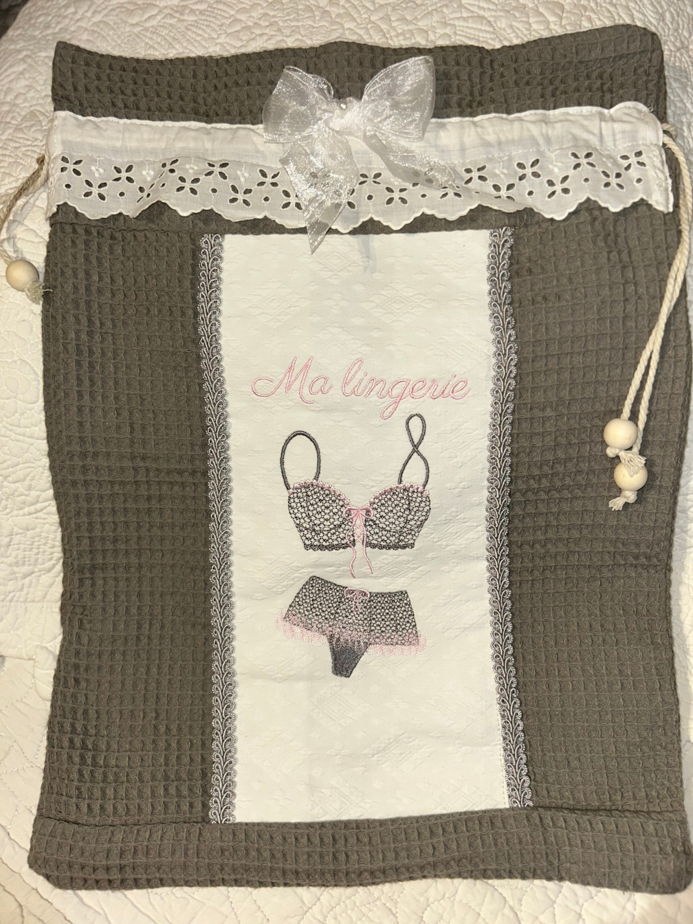 Je vous propose ce grand sac à chaussures en coton, entièrement doublé. Une cordelette rouge permet de le fermer